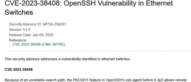 四零四科技(Moxa)針對旗下工業交換器發布資安公告,修補OpenSSH重大漏洞CVE-2023-38408,並指出該弱點源自2016年一項漏洞修補不完整所留下的問題