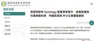 資安院在2月9日發布群暉NAS裝置裝置資安警示,指出高風險漏洞可遭串聯利用,發現國內超過一千臺相關設備對外暴露,且尚未完成更新,由於近期已有資安研究人員實際驗證並公開相關漏洞的利用方式,呼籲民眾與中小企業儘速更新