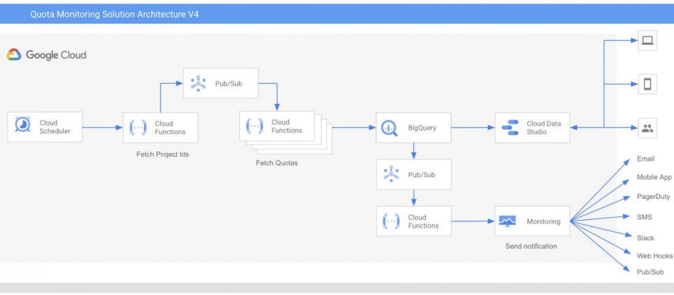 Google雲端推出配額監控解決方案(Quota Monitoring Solution),讓用戶能夠以自動化的方式,管理大量專案的配額。在預設的情況下,Google雲端平臺會以資源配額,來限制用戶可以使用的資源量,每個配額代表特定可量化的資源,像是特定服務的API呼叫,或是專案同時可使用的運算核心數。