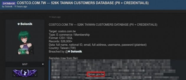 有人聲稱握有臺灣Costco(好市多)會員個資,並公布部分資料兜售整批檔案,對此臺灣好市多表示,經確認後,業者表示這批資料並非其會員個資