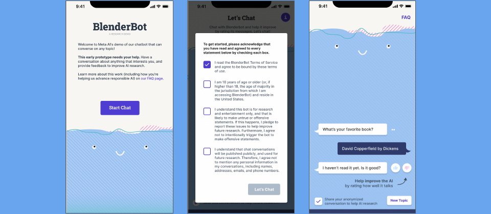 Meta上周五(8/5)釋出了第三代的聊天機器人BlenderBot 3,它奠基在1,750億個參數的OPT-175B語言模型,使用更多的資料集,宣稱其對話效能比上一代好上31%,知識能力是前一代的兩倍,錯誤率則少了47%,並開放美國用戶試用及提出意見。