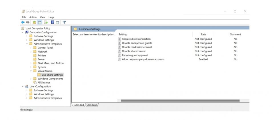 微軟在其Visual Studio程式協作擴充套件Live Share新增企業管理政策,使得管理員有更多工具可以控制Live Share的會話連接,像是只允許組織中的成員存取,或是禁用讀寫終端等限制,避免事故發生並提高生產效率。