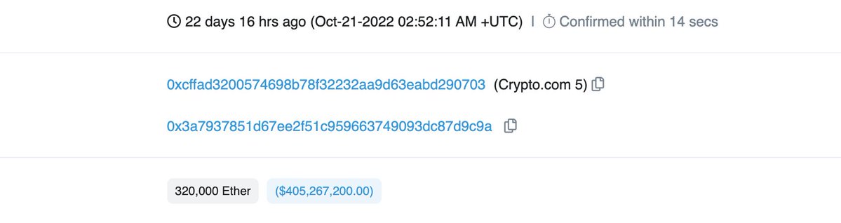 一名Twitter用戶@jconorgrogan周日(11/13)指出,Crypto.com曾經在10月21日將32萬個以太幣轉至另一個平臺Gate.io,這占了Crypto所持有的82%的以太幣,消息一出,Crypto平臺即出現大量提款。