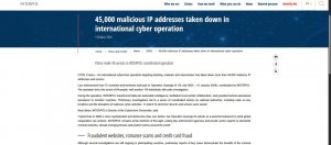 國際刑警組織聯手72國執法機關,移除4.5萬個惡意IP位址、逮捕94人