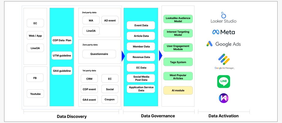 整合CDP、MA等Martech系統資料,以及其他各式資料來源及分析工具,陳宏益希望能讓第一線人員能更全面地瀏覽、分析、應用資料。「搜尋流量、探索流量、自然流量,還有各式各樣的資料,如果不一起看,不容易看出個所以然。」他說,「所以要整合不同來源的資料,更要讓第一線人員學習,如何看懂這些資料。」