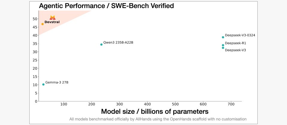 法國AI新創公司Mistral本周宣布協助程式設計的代理人大語言模型(LLM)Devstral,可單機部署,且號稱軟工能力比GPT-4.1mini、Deepseek-V3還強。
