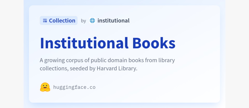 由微軟及OpenAI贊助、起源於哈佛法學院圖書館研究計畫的機構資料計畫(Institutional Data Initiative,IDI),上周開源了AI資料集Institutional Books 1.0,內含98.3萬本的哈佛藏書,總計3.86億頁,以及2,420億個Token與245種語言,而這也是IDI所釋出的首個公共領域圖書。