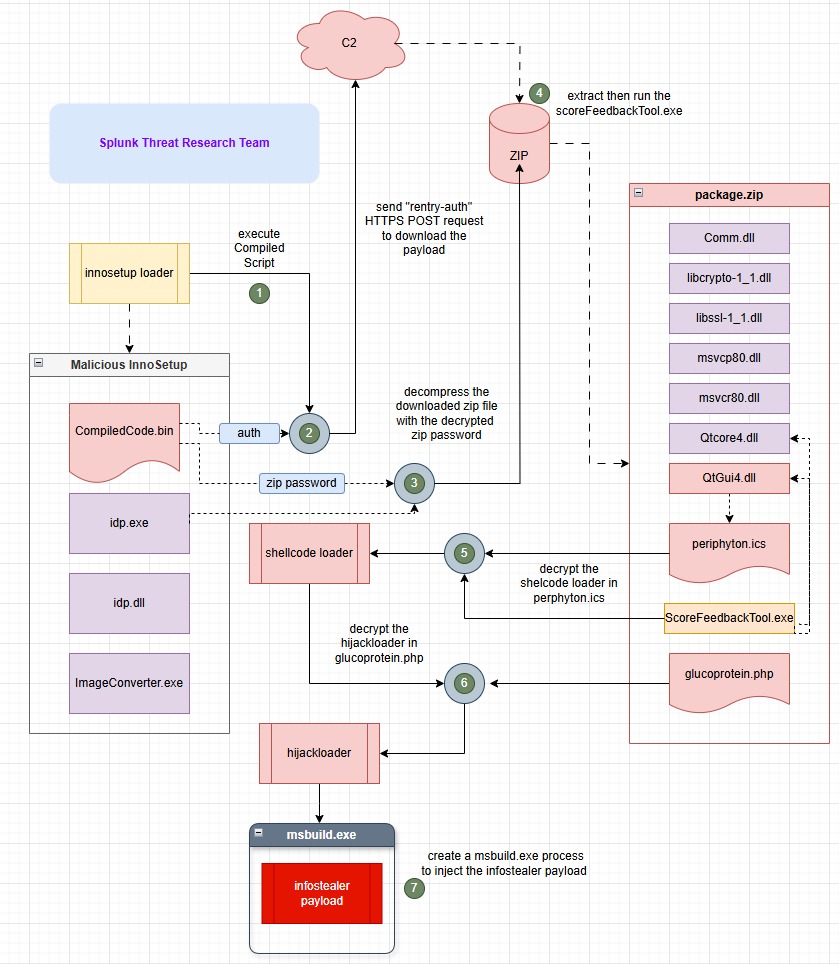 最近有個惡意的Inno Setup安裝程式,引起企業資料搜尋與資安軟體業者Splunk研究人員的注意,駭客利用此種安裝工具提供的Pascal指令碼功能,於受害電腦接收、下載下個階段的有效酬載,然後執行Shell Code與惡意程式下載工具HijackLoader,從而成功迴避偵測,最終傳遞惡意昭彰的竊資軟體RedLine Stealer。