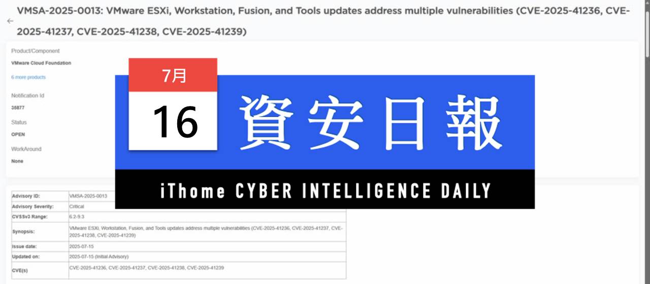 7月15日VMware針對旗下的虛擬化平臺ESXi、Workstation、Fusion,以及虛擬機公用程式Tools發布軟體更新,目的是修補一系列的資安漏洞CVE-2025-41236、CVE-2025-41237、CVE-2025-41238、CVE-2025-41239,值得留意的是,這4項弱點當中,有3項評為重大層級,且都源自漏洞挖掘競賽Pwn2Own參賽者的發現。