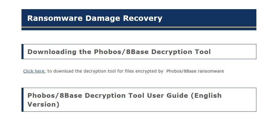 日本警方現已將Phobos及8Base的解密金鑰釋出,同時也提供英文版使用者指引。兩項金鑰也同時列於歐洲刑警組織(Europol)的勒索軟體解密金鑰網站NoMoreRansom。