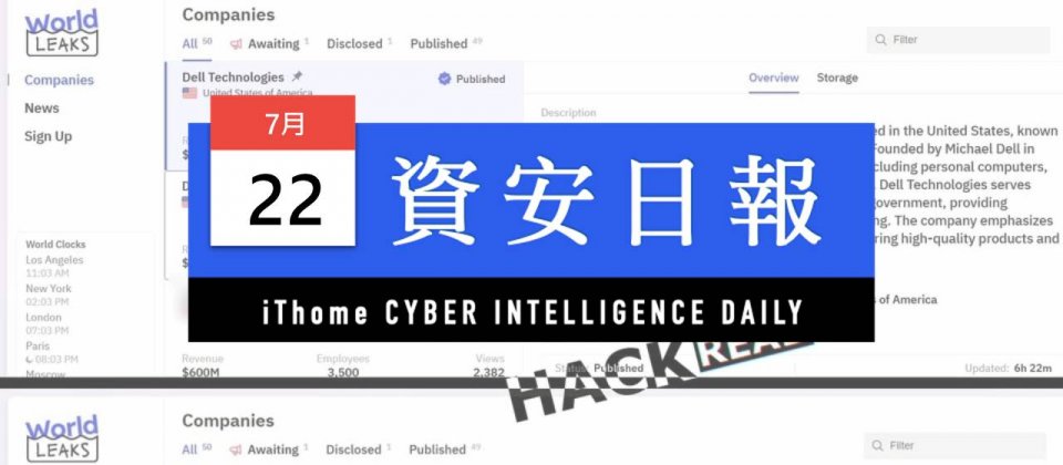 7月初臺灣發生全支付(Pxpay Plus)測試環境帳密遭到外流,駭客在深網兜售,如今又有測試環境遭駭的事故傳出,這次的苦主是Dell,攻擊者的身分是World Leaks,後續影響相當值得觀察。