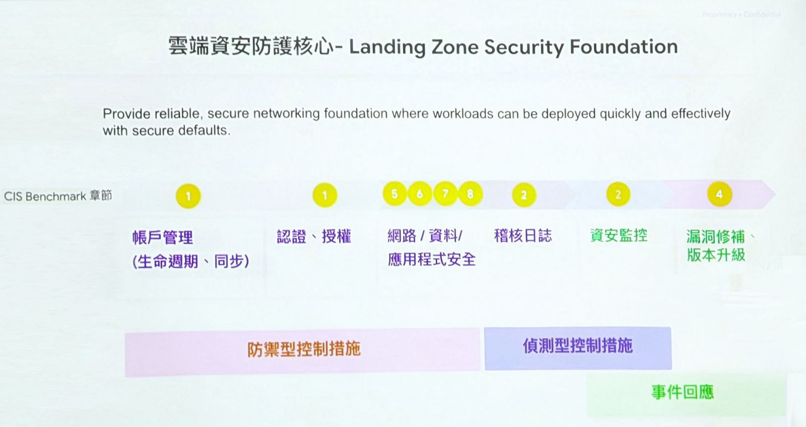 在解析GCP的CIS Benchmark時,Google Cloud客戶解決方案架構師鄭家明特別將其8大章節對應到預防、偵測、回應三大階段,讓大家可以從生命週期角度來理解。