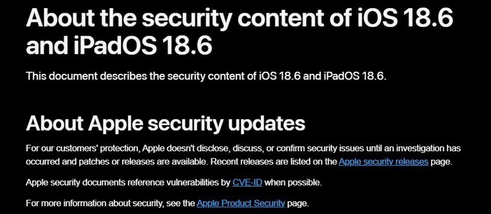 蘋果於7月29、30日,針對旗下的行動裝置、電腦、穿戴裝置、電視盒,發布iOS 18.6、iPadOS 18.6與17.7.9、macOS Sequoia 15.6、watchOS 11.6、visionOS 2.6、tvOS 18.6,並為macOS Ventura與Sonoma用戶發布瀏覽器更新Safari 18.6,其中一項修補的資安漏洞,就是存在於Safari排版引擎WebKit的CVE-2025-6558,並指出一旦瀏覽器處理特製的惡意網頁內容,就有機會導致無預期當機的現象。蘋果提及此漏洞出現在他們採用的開放原始碼內容,由Google威脅分析團隊(TAG)通報。