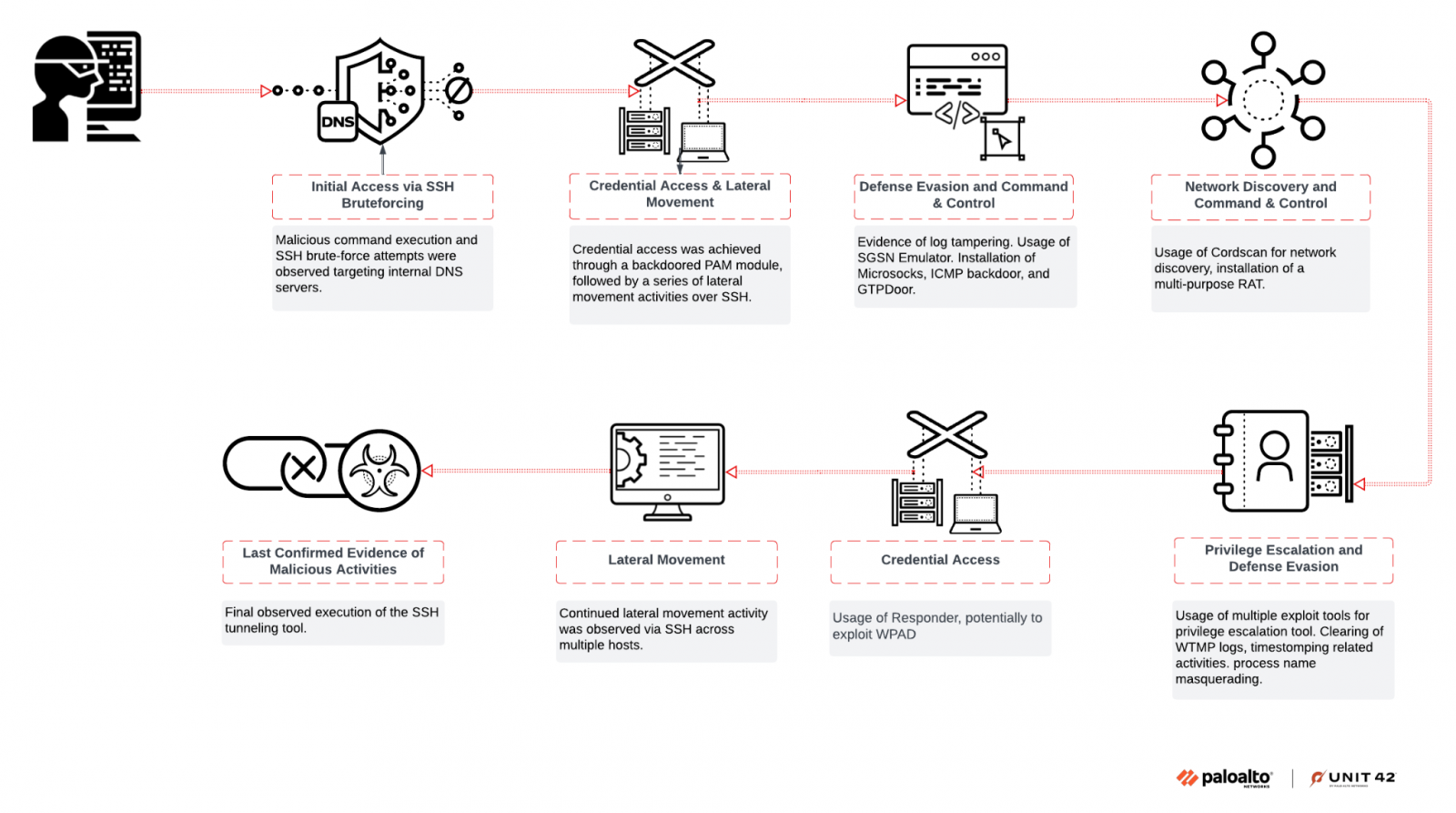 針對這些駭客的來歷,Palo Alto Networks推測是與Liminal Panda高度相關的國家級駭客,但也有部分工具來自其他組織,例如:LightBasin、UNC3886、UNC2891,以及UNC1945。