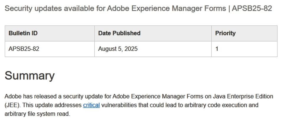 8月5日Adobe針對電子表單平臺Adobe Experience Manager Forms(AEM Forms)發布緊急修補,公告兩個資安漏洞,這些漏洞不僅危險,其中一個風險值更達到滿分,而且,相關細節在Adobe發布修補程式之前,就已經被公布,很有可能成為接下來歹徒利用的對象。因此,Adobe認為,雖然目前他們尚未發現漏洞遭到利用的跡象,但用戶應以最優先層級採取因應措施。