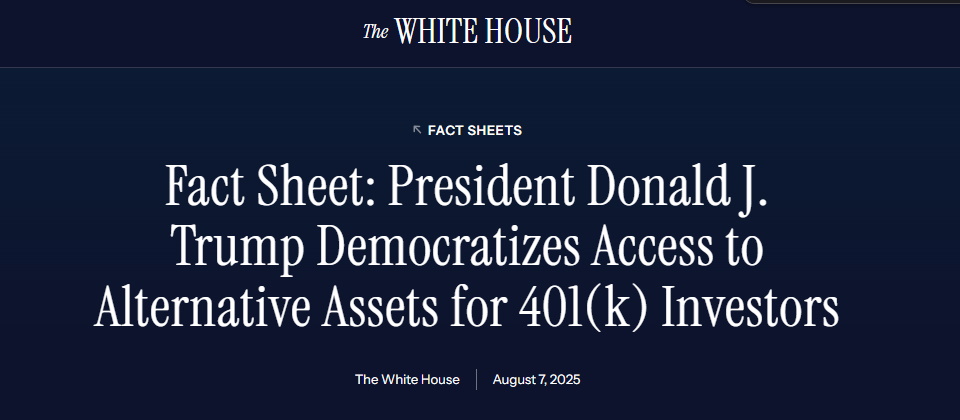 川普表示,目前有超過9000萬名美國人參加雇主提供的確定提撥型退休計畫,但大多數人無法投資另類資產,與富裕投資者及公務員退休計畫相比存在不公平。他認為,另類資產能提供競爭性回報並分散風險,擴大投資選擇有助於確保退休生活的尊嚴與穩定。