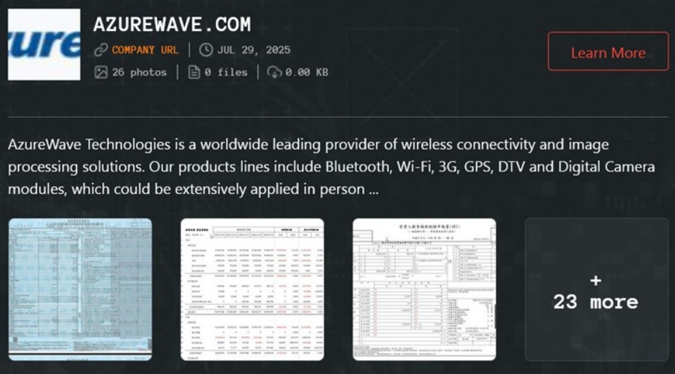為何海華二度發布資安重訊,起因是民視新聞網的報導指出,惡名昭彰的勒索軟體駭客Qilin近日聲稱,他們從海華科技(AzureWave.com)竊得內部資料,並於暗網公布其中的26個檔案。至於歹徒是否對海華勒索,民視新聞網指出,Qilin並未提出進一步要求,公布部分內部資料疑似是為了向海華施壓。對此,海華取得報導提及的文件進行檢視,並表示根據評估對公司營運及財務無重大影響。