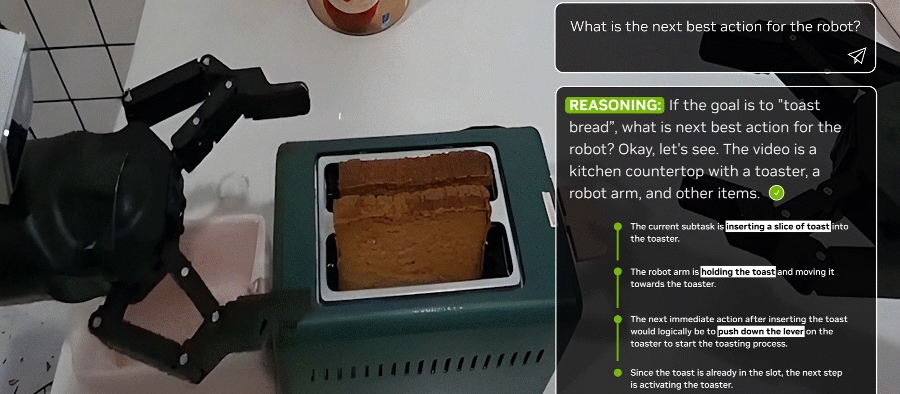 在實體人工智慧(Physical AI)領域,Nvidia推出的Cosmos Reason是一款開放且可自訂的70億參數推理視覺語言模型(Vision Language Model,VLM),具備物理概念理解、物體恆存與時空推理等能力。該模型可作為機器人視覺語言行動(Vision Language Action,VLA)模型的推理核心,支援決策制定、訓練資料的篩選與標註,以及視訊分析人工智慧代理的部署。在工廠、倉儲、零售、機場與交通監控等場景中,這些人工智慧代理能夠進行異常檢測與即時摘要,協助企業提升營運監控與反應速度。