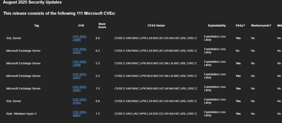 8月12日微軟發布每月例行更新(Patch Tuesday),總共修補111項漏洞,數量較上個月130個有所下降。從漏洞的類型來看,權限提升(EoP)漏洞最多,有44個,其次是遠端程式碼執行(RCE)漏洞,有35個;其餘為資訊洩露、可被用於欺騙的漏洞、阻斷服務(DoS),以及能用來竄改的漏洞,分別有18個、9個、4個、1個。