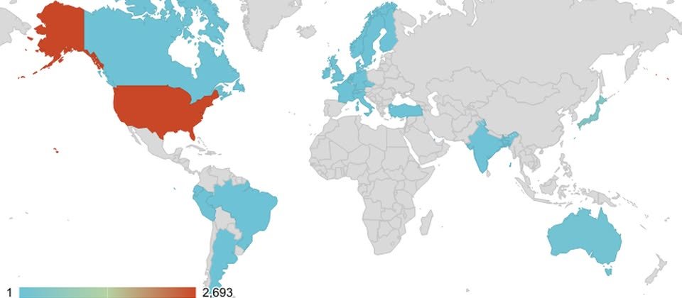 其中,在荷蘭、愛爾蘭、巴西、厄瓜多出現的事故,全數皆發生在OT環境;其次在日本有99.74%,至於美國、法國,占比分別為71.15%、66.67%,雖然這兩個國家OT環境受害的比例沒有前述幾個國家那麼高,但他們是Erlang/OTP伺服器數量最多的國家,因此影響的範圍還是相當可觀,以美國為例,光是發生在OT環境的事故就有1,916起,占總數近六成(56.75%)。