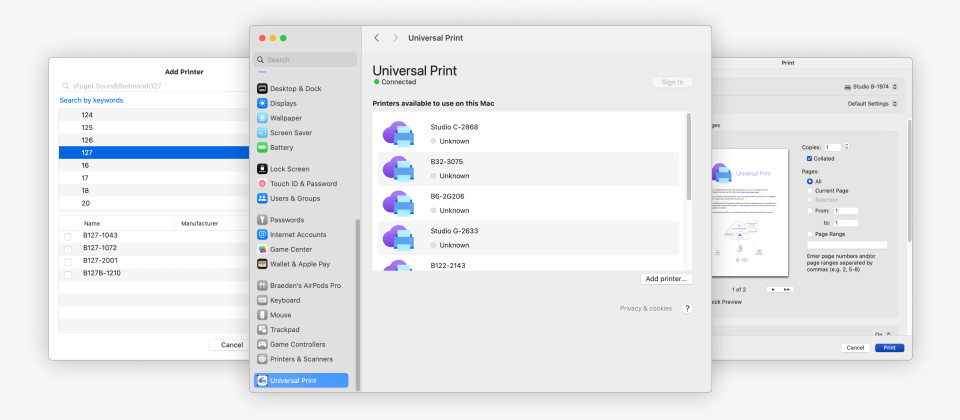 微軟周三(8/13)宣布Universal Print Anywhere功能已全面上線,供Microsoft 365用戶自任何印表機上執行安全列印,並同時支援Windows與macOS平臺。