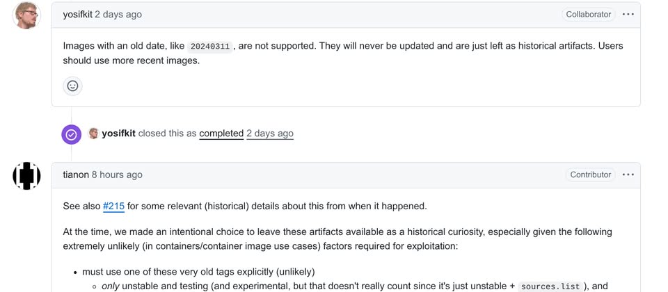 然而,不少維護團隊認為,存在風險的映像檔皆為過時版本,用戶大多習於採用最新版本的檔案,因此衝擊不大,他們仍決定保留這些舊版本。但Binarly指出,儘管利用後門需具備一定的條件,留存這種帶有後門的映像檔,還是有資安風險,後續情形相當值得關注。