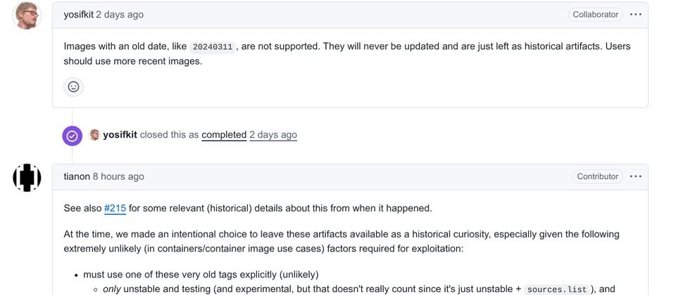 Binarly一共找到35個存在後門程式的映像檔,乍看之下,這樣的數量並不多,但該公司強調,他們只有針對一部分在Docker Hub發布的映像檔進行檢查,並且關注Debian映像檔,原因是這類檔案在Docker Hub上保留歷史記錄資料。除此之外,若是以其他受到XZ Utils影響的Linux發行版,例如:Fedora、OpenSUSE等,所打造的Docker映像檔,是否也存在這樣的風險?問題有多嚴重?因為缺乏相關資料可供追查,目前仍不得而知。