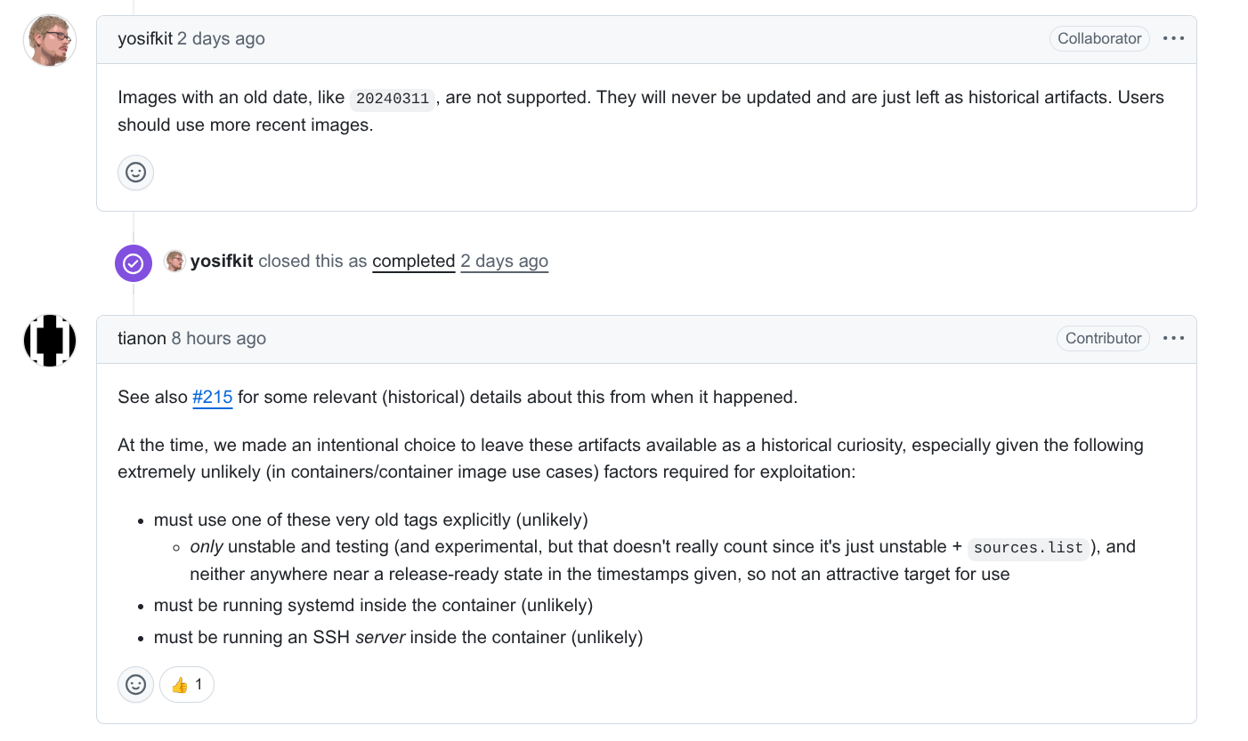 資安業者Binarly指出,他們發現有一批在上述供應鏈攻擊期間建立的Docker映像檔,也存在這個後門程式,值得留意的是,部分映像檔仍能在Docker Hub公開取得,一旦其他人以這些映像檔為基礎打造新的檔案,他們的映像檔恐怕也同樣存在相同的後門。這起調查結果,代表即便後門程式碼出現的時間相當短暫,但有可能在不被注意的情況下,在容器儲存庫潛伏相當長的時間。