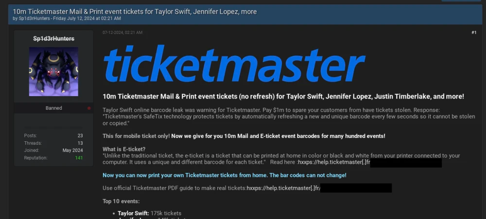 ReliaQuest指出,ShinyHunters在沉寂一年之後突然出現,對多個領域採用Salesforce的知名企業發動攻擊,這種不尋常的現象,他們經調查發現,攻擊者疑似使用一組Ticket開頭的釣魚網域,以及Salesforce帳密挖掘網頁犯案,而且與Scattered Spider聯手犯案,相關合作可追溯到2024年7月,其中的一項證據,是駭客論壇BreachForums出現名為Sp1d3rhunters的用戶,該名用戶與過往ShinyHunters的活動有關,亦與上述攻擊網域的註冊特徵有所交集。ReliaQuest警告,這些駭客下一波的攻擊標的,很可能是金融服務及科技服務供應商。