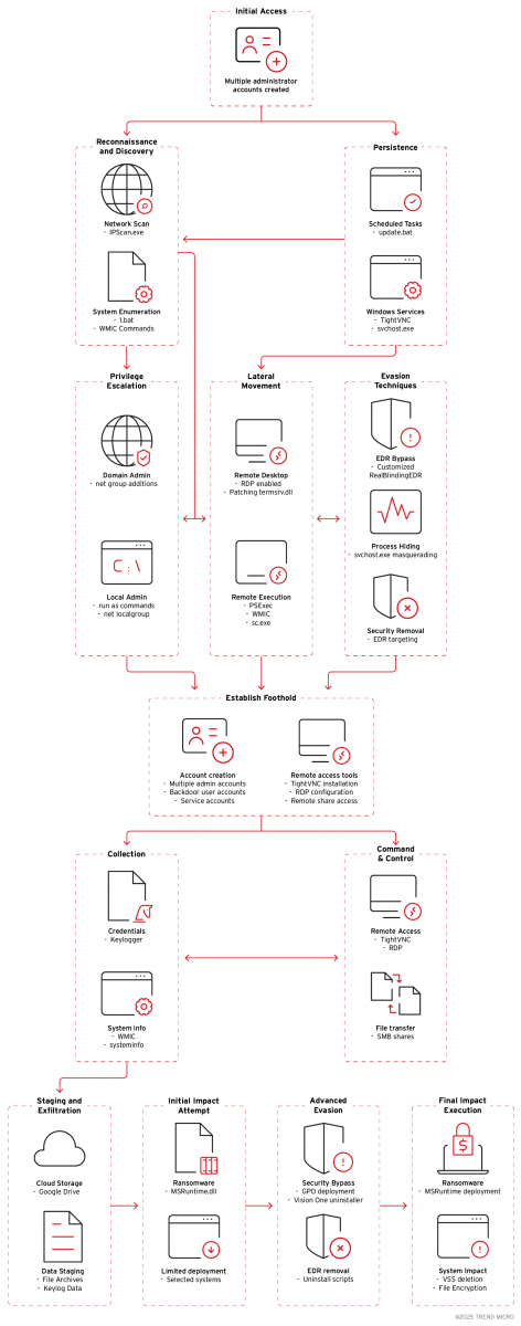 趨勢科技認為,Crypto24代表了勒索軟體攻擊活動的轉變,因為他們展現高度的成熟操作能力,巧妙地將PSExec、AnyDesk等合法工具用於寄生攻擊(LOLBins),且與惡意軟體結合,而能夠融入受害企業正常的IT作業,並在離峰時段執行精準攻擊,駭客不光加密檔案,還利用鍵盤側錄工具收集帳密,以及透過雲端檔案共享服務外流內部資料。