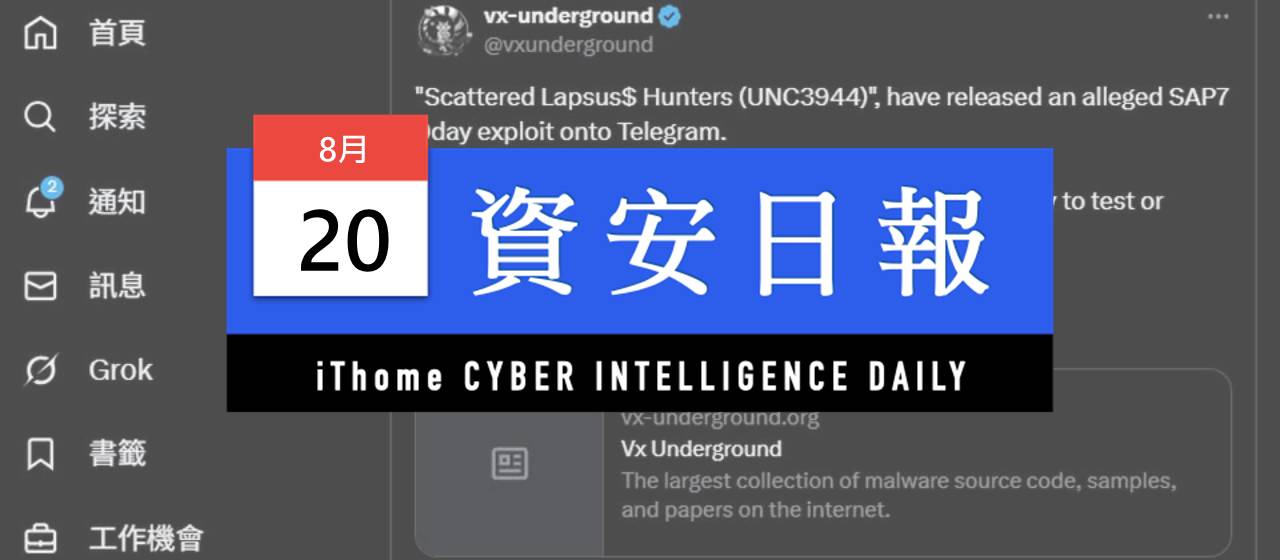 8月15日資安研究團隊VX Underground提出警告,駭客團體「Scattered Lapsus$ Hunters (UNC3944)」於即時通訊軟體Telegram的頻道聲稱,他們發布能利用SAP零時差漏洞的工具。這個UNC3944,是由幾個惡名昭彰的駭客組織ShinyHunters、Scattered Spider、Lapsus$集結而成的。