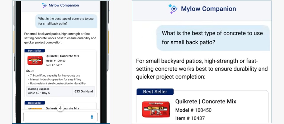 顧客用的GenAI助理名為Mylow,號稱第一個專屬居家零售界的購物助理,以自然語言對話,提供商品搜尋與推薦、裝潢建議、DIY教學、Lowe's服務推薦等。兩個GenAI助理都是與OpenAI合作,以相同技術基礎打造而成。