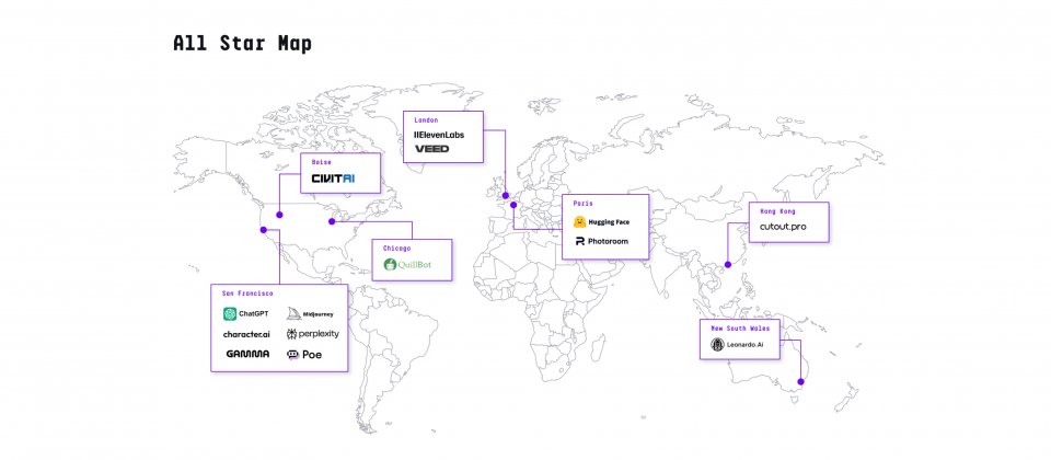 a16z將Google相關產品以不同網域分別統計,AI Studio首度進榜即進入前十,NotebookLM位居第13並持續穩健成長,Google Labs排名第39,5月推出的影片模型Veo 3帶動單月流量增長超過13%。在Web榜單前二十名中,針對中國市場的Quark、Doubao與Kimi均有上榜。行動端則以影像與影片編修類應用為主,Meitu及字節跳動系列產品占據多席。