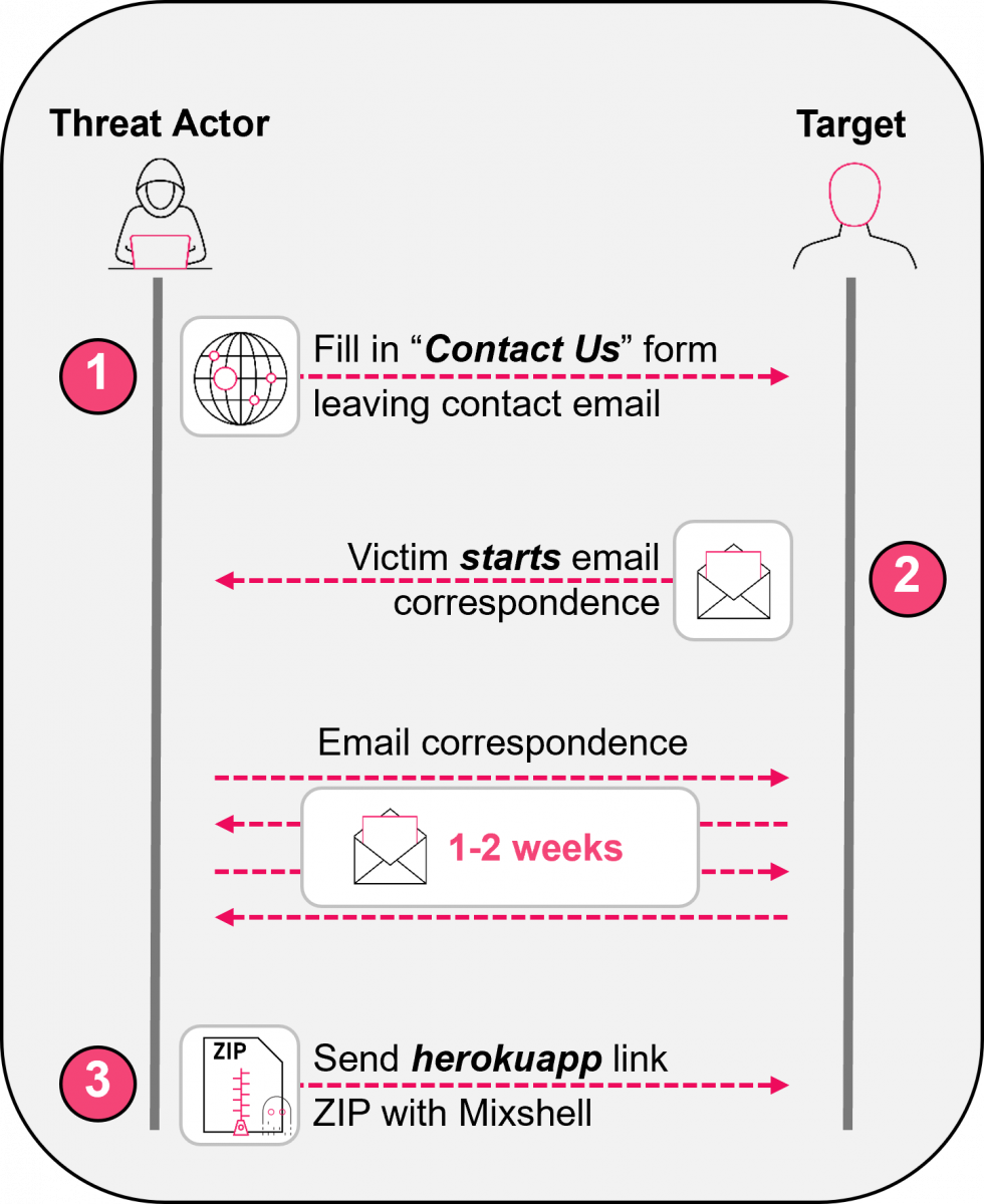 例如,最近資安業者Check Point揭露的攻擊行動ZipLine,就是這種型態的例子。駭客鎖定製造業供應鏈當中的重要公司,藉由看似合法的業務互動,意圖散布惡意軟體。他們透過目標公司網站上公開的「聯絡我們(Contact Us)」表單,以此跳脫一般釣魚攻擊的制式流程,先由目標企業組織對攻擊者主動寄送電子郵件,進而建立信任。