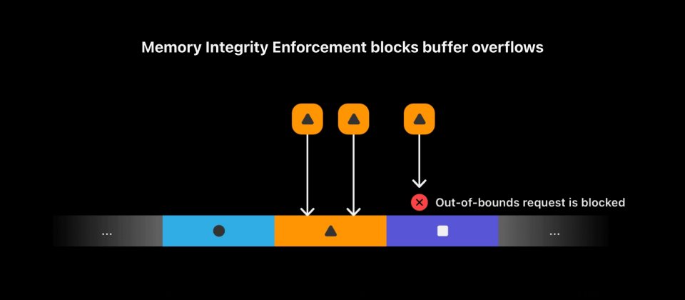 Apple在新推出的iPhone 17系列與iPhone Air導入MIE(Memory Integrity Enforcement),MIE結合A19與A19 Pro的硬體能力與作業系統安全設計,作為全時預設的記憶體安全防護,覆蓋關鍵攻擊面,包括系統核心與超過70個使用者空間程序(Userland Processes),目標是降低記憶體破壞漏洞被利用的可能性,特別是緩衝區溢位與釋放後使用(Use-after-free)。Apple稱其為消費型作業系統歷來最重大的記憶體安全升級。