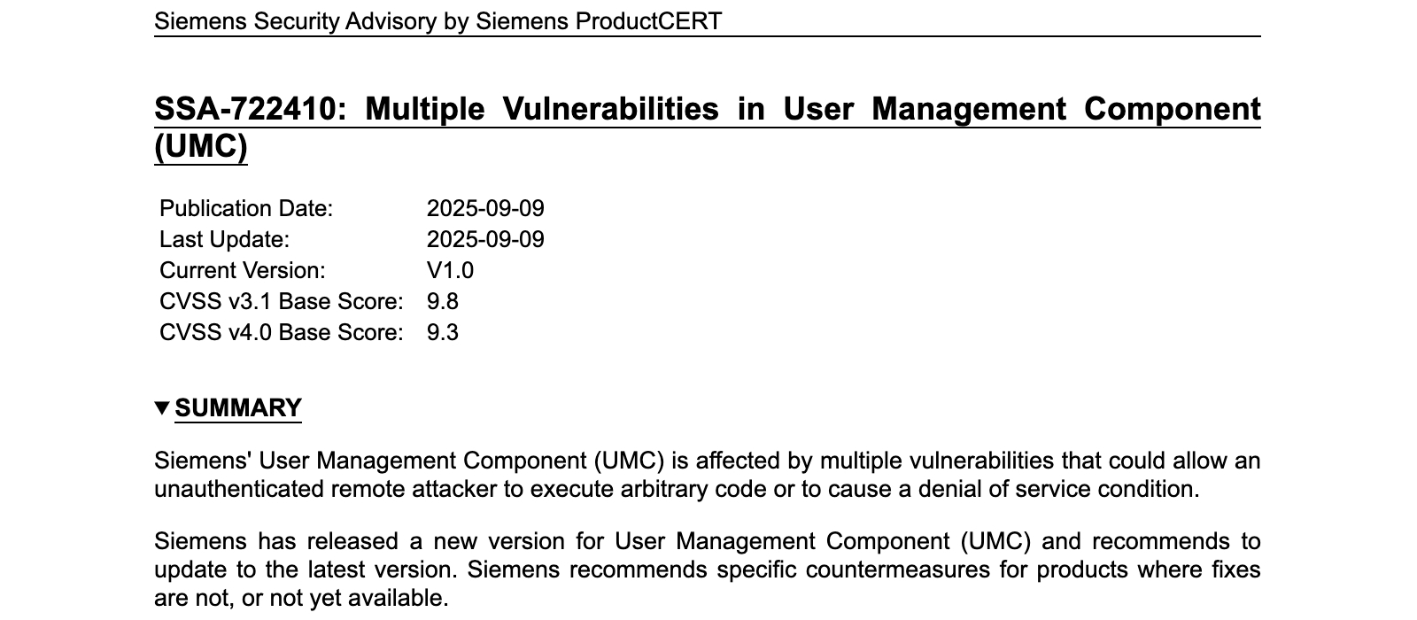 通報指出,所有低於UMC V2.15.1.3的版本均受影響。西門子已推出V2.15.1.3作為修補版本,並建議使用者在可行的情況下立即升級,要是暫時無法更新,官方也提出臨時因應措施,在非網路部署情境,用戶可以直接在安裝UMC的機器上封鎖TCP 4002與4004連接埠。
