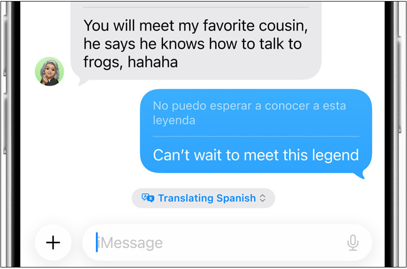 全新的即時翻譯功能是利用裝置上內建的LLM來分析語音與文字內容,可支援各種情境,包括電話交談、FaceTime、Messages或AirPods等。例如在Messages中,使用者輸入回覆時,該功能可自動將訊息翻譯成對方的語言並傳送;在FaceTime時,使用者可一邊聽見親友的聲音,並同步看到即時翻譯的文字;講電話的時候則會聽到即時翻譯的語音。