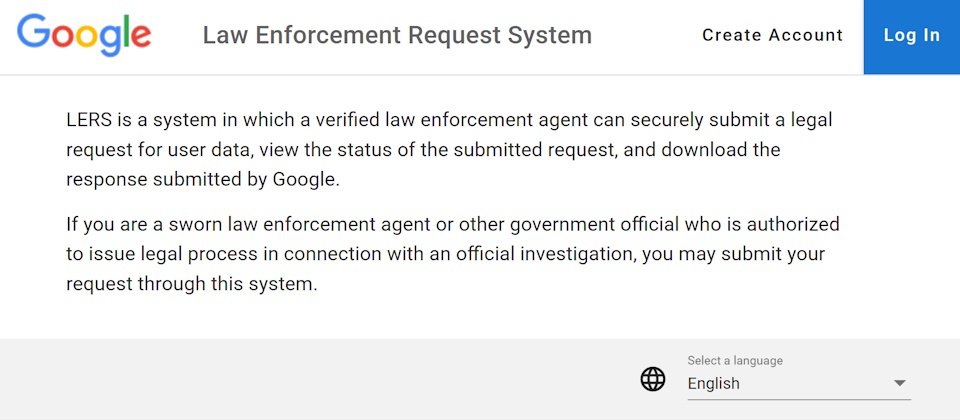 LERS允許經過驗證的執法人員提交合法的用戶資料申請,查看申請案件的處理狀態,以及下載Google所提供的回應資料;具備正式執法權力以及正在辦案的政府官員都可透過該系統提交申請。取得帳號代表駭客將能冒充警察或檢調機關,要求Google提供用戶的詳細資訊。
