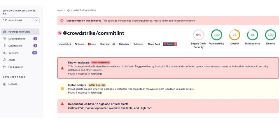 資安業者Socket指出,資安業者CrowdStrike用來發布NPM套件的帳號crowdstrike-publisher出現遭到破壞的情況,他們研判很有可能是軟體供應鏈攻擊活動Shai-Hulud的一部分,因為駭客使用的惡意軟體相同,且當中包含名為bundle.js的指令碼。此指令碼的主要用途,包含下載帳密掃描工具TruffleHog並執行,然後搜尋受害電腦存放的憑證及雲端帳密、偵察開發者的CI帳密資料,並在特定的儲存庫建立未經授權的GitHub Actions工作流程,最終將前述提及的敏感資料外流。