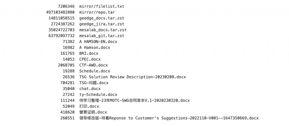 洩漏檔案可透過BitTorrent與HTTPS鏡像下載,最大檔案mirror/repo.tar本身就接近500 GB,為RPM打包伺服器鏡像,另有geedge_docs、mesalab_docs、Jira匯出檔與Git倉庫備分等數十GB檔案。這些內容不僅涵蓋系統模組,還包括套件依賴與版本時間軸,使研究者能從供應鏈角度觀察產品生命周期。此類完整的工程鏡像過去極少外流,這使得外界能夠從程式碼到維運紀錄進行還原。