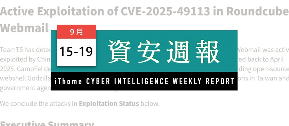 在2025年9月第三星期的資安新聞中,中國駭客組織CamoFei的攻擊動向最受關注,主要利用郵件伺服器系統Roundcube在6月揭露的重大漏洞CVE-2025-49113入侵多國政府機構,臺灣資安業者TeamT5杜浦數位安全最近揭露,國內教育機構也是受害者,並指出攻擊者入侵後,部署名為Godzilla的後門程式,以及RAT木馬Pupy。