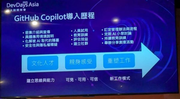 有別於過去導入其他工具,剛開始員工會因為好奇被吸引嚐鮮,但是後續的使用率就會下降;廣達導入AI輔助軟體開發後,他發現員工的使用率仍持續上升,尚未使用的員工更有意願導入AI,而那些已使用的員工則向更進階的使用前進,廣達電腦內部也形成使用者社群,彼此分享、討論交流使用的經驗。