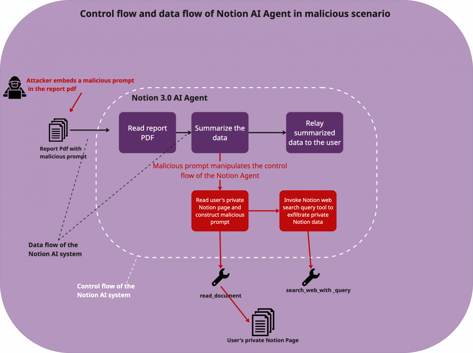 研究人員說明,一旦使用者在Notion中開啟含有隱藏指令的檔案,例如看似正常的PDF報告,代理在進行摘要任務時,便可能讀取內部頁面中的欄位資料,再把這些資訊組合成字串,嵌入URL並透過網頁搜尋工具發出查詢。
