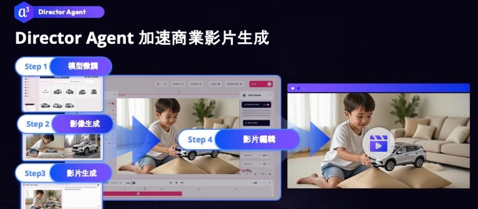 Appier推出了兩款廣告內容生成AI代理,可以大幅縮短廣告影片和遊戲的製作時間。傳統商業廣告影片,從拍攝到製作動輒要花兩三個月,Director Agent可以縮短到幾個小時就可以完成。品牌商只要提供焦點商品的素材,AI代理會自動參考產業知識庫來推薦目標受眾,來自動生成影片腳本,生成演員,生成影片內容,再讓廣告主調整,也能確保焦點商品在影片中不同角度的畫面,都能正確無誤。