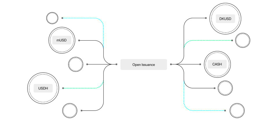 Open Issuance是一個讓任何企業都能發行與管理自家穩定幣的新平臺,宣稱企業只需要幾天就能發行自己的穩定幣,並由負責相關的儲存資產管理、安全性、流動性及合規問題;企業可自由設定所支援的區塊鏈、智慧合約功能,以及儲備組合;此外,所有透過Open Issuance發行的穩定幣皆可以一比一互換,以建立統一的流動性池,只要藉由Bridge API即可即時交換;平臺也會提供上下匯管道、錢包整合,以及各種API與開發工具。
