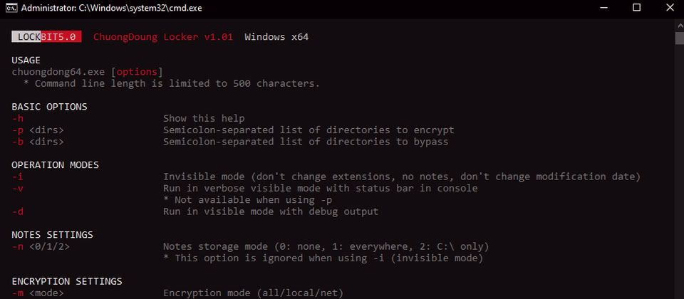 其中,新版較為特別的地方在於,駭客對附屬團體加入了說明功能(-h參數),不僅列出所有功能,還有指令的範例供參考。這代表附屬團體無須記憶相關參數及指令,只需依照說明內容,就能下達自己想要的加密命令,大幅降低技術門檻。附帶一提的是,LockBit 5.0的Linux版本特別提供執行結果的詳細事件記錄資料,可列出所有遭加密的檔案,以及被排除的資料夾。