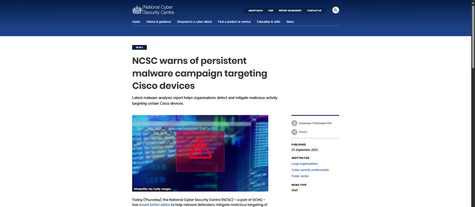 9月25日思科發布警告,該公司旗下的防火牆產品線Adaptive Security Appliance(ASA)、Firewall Threat Defense(FTD)存在零時差漏洞CVE-2025-20333、CVE-2025-20362(CVSS風險9.9分、6.5分),這些漏洞都出現在VPN Web Server元件,思科在資安公告提及,已有試圖利用漏洞的跡象,有參與調查的資安機構也透露相關攻擊活動的細節。