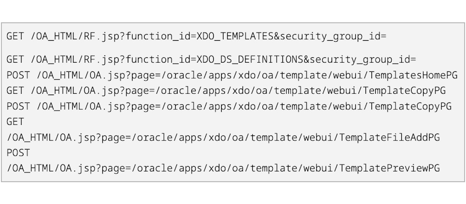 接著,為了執行特定的程式碼,攻擊者針對XML Publisher Template Manager元件下手,發出請求並上傳、執行惡意的XSLT範本檔案。一旦範本檔案成功執行,Java網頁伺服器就會與攻擊者的基礎設施建立連線,攻擊者以此遠端在EBS載入Web Shell,以此執行命令及建立持續存取的管道。
