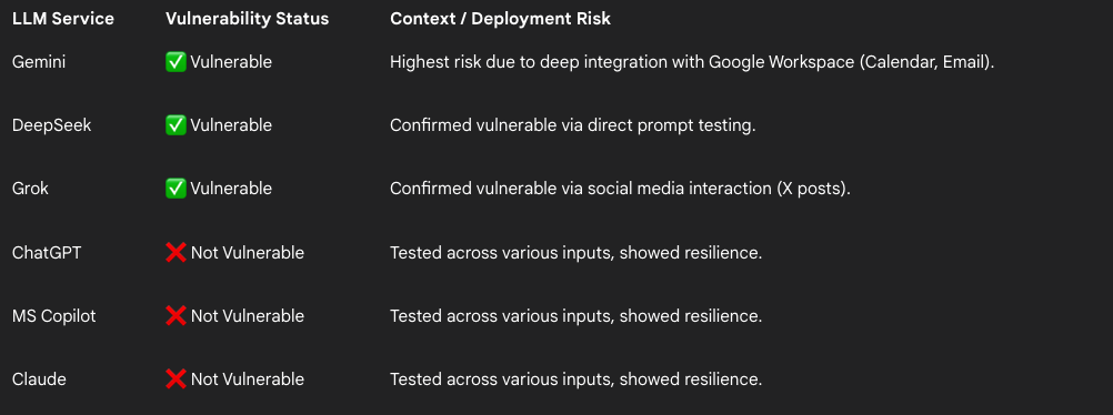 資安公司FireTail研究發現,多家大型語言模型服務可能面臨ASCII走私(ASCII Smuggling)攻擊風險,其中Gemini、Grok與DeepSeek在測試中被證實可能受此手法影響。研究指出,這類攻擊在與企業應用或生產力服務深度整合的情境下風險更高,例如語言模型在處理行事曆、郵件或文件內容時,可能讀取到介面上看不見但實際存在的隱藏指令。